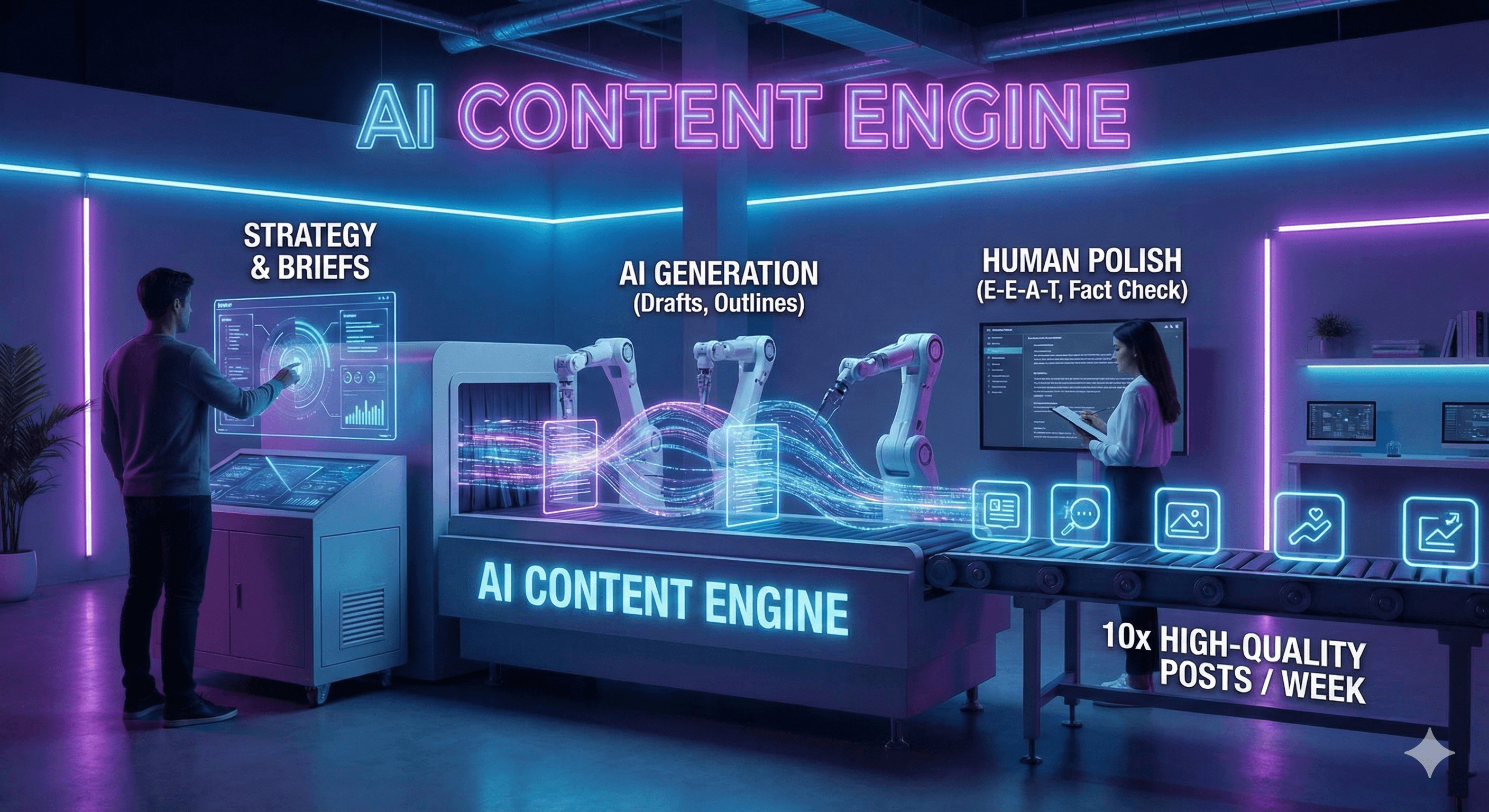 Here is the blueprint for building a production line that marries AI speed with human expertise (E-E-A-T).