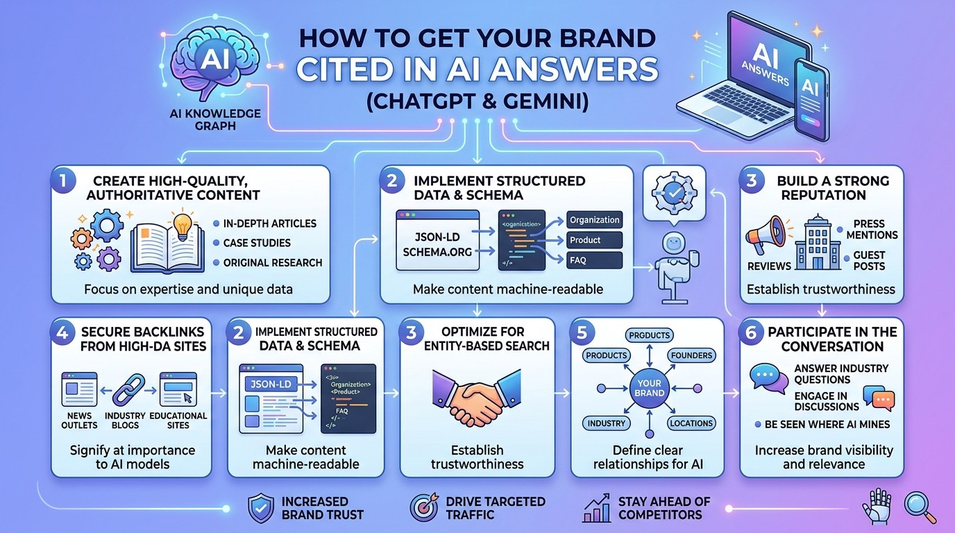 To get your brand cited in ChatGPT and Gemini answers, you first need to understand how these models decide what to reference. Large language models are trained on vast amounts of web content and learn to associate certain sources with authority, trustworthiness, and topical relevance. The content that gets cited most often shares several clear characteristics.